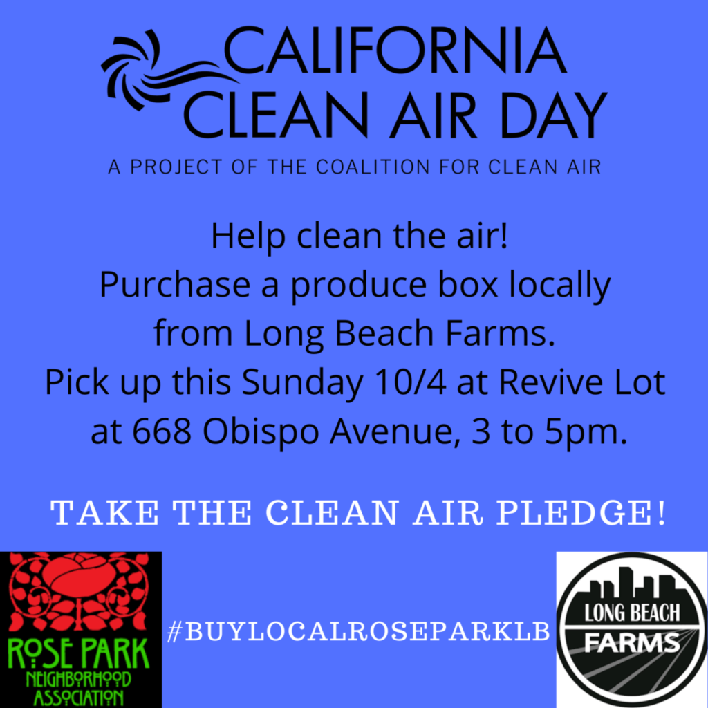 We are gearing up for California Clean Air Day! Help clean the air by purchasing a local produce box from Long Beach Farms and reduce your carbon footprint. Pick up this Sunday at Revive Church Parking Lot at 668 Obispo Avenue!