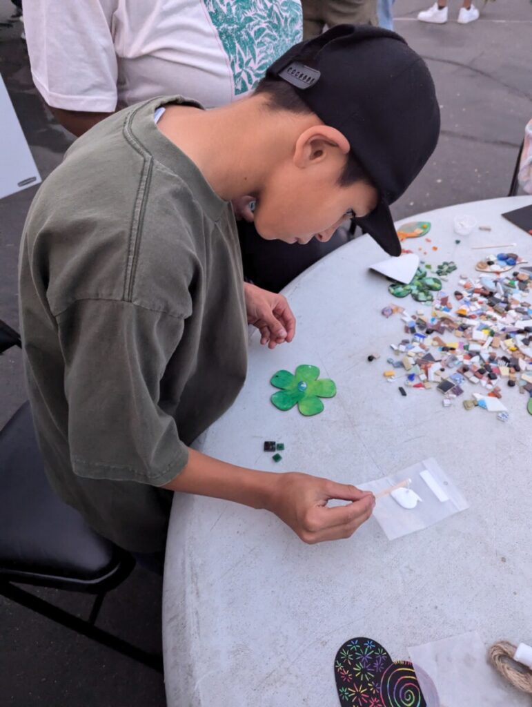 ArtWorksLBC is a community benefit project of Rose Park Neighborhood Association, created to foster community engagement through the use and application of art. ArtWorksLBC Director and Mosaic Artist, Dawn Mendelson leads the community workshops which include: Safe Refuge Mural Project, Art programs for kids and adults in Rose Park on 8th and Orizaba, holiday workshops, art projects with LBUSD students and staff, The Parking Lot: Art Session & Skate Jam event at Revive on E7th Street, and the revitalization of neighborhood spaces with Roses for Rose Park Artist, Cody Lusby.
