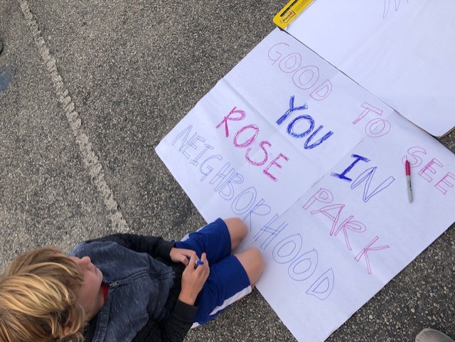 Bennett Dague makes a welcome sign for neighbors on Saturday, November 20th