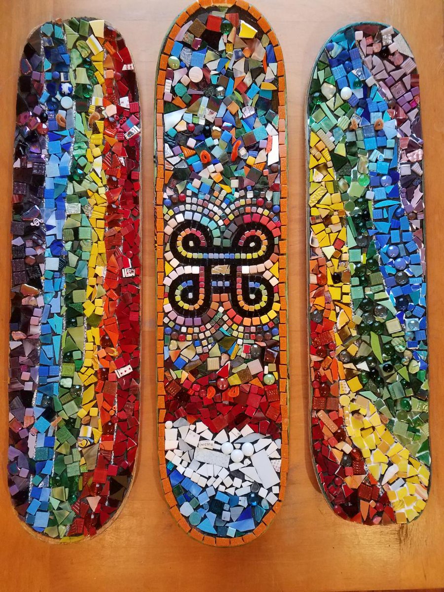 BIG heART event – the “All Hands on Deck” – the boards are undergoing final completion including pieces of mosaics into each design, grouting, cleaning and then framing each piece for exhibition. All of us who have participated are on pins and needles waiting for the first show!