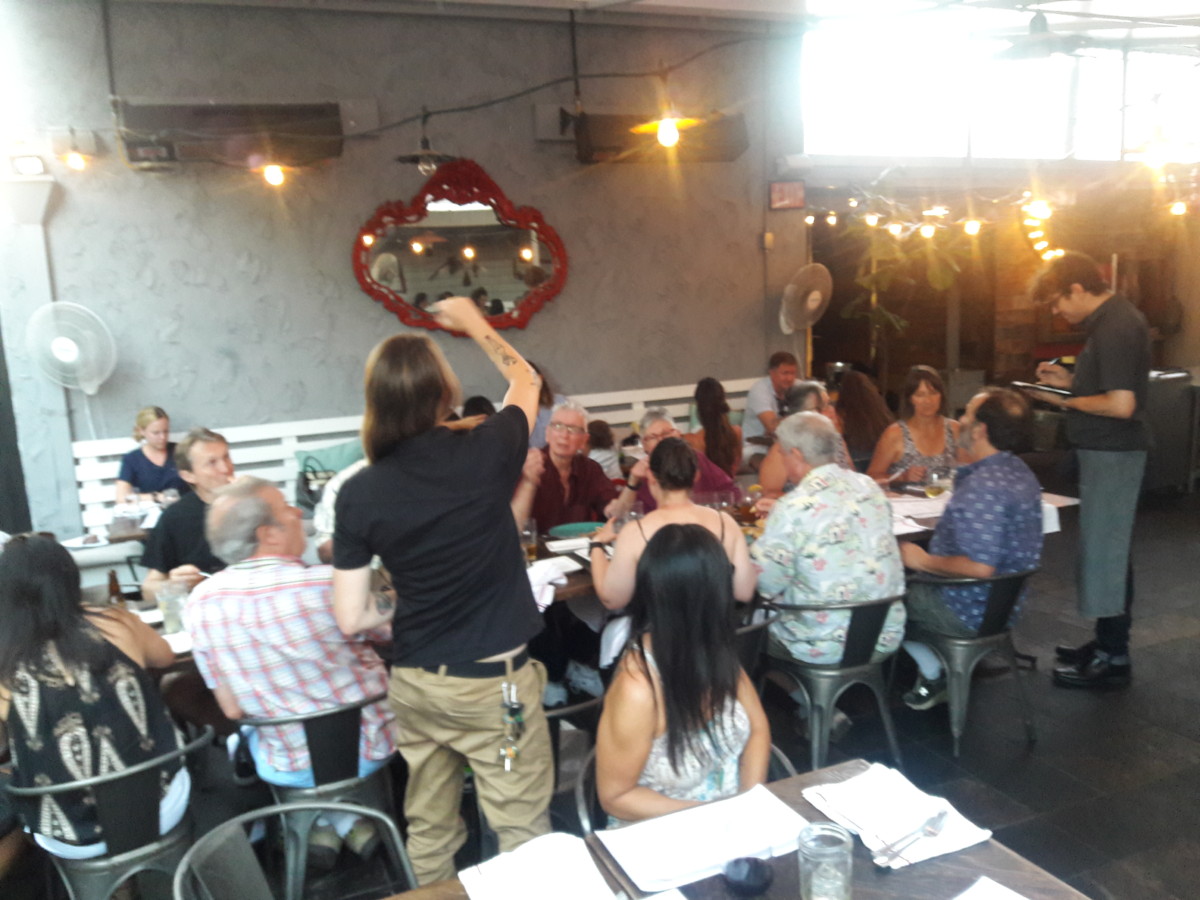 What happens when neighbors get together? Last night, July 11th , 2017 people discussed the Midnight Moon Mash bike ride, joining a book club and important books they’ve read, having an Indie meet-up at a new art gallery and meeting on a more frequent basis. And that was just at my table! Several tables filled with great food, beverage and conversation.
