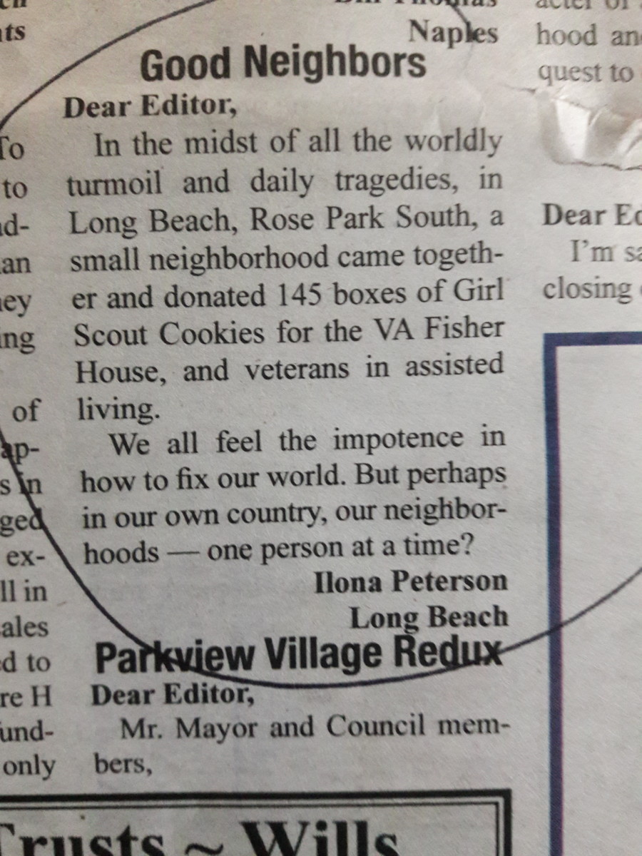 Tucked into the many and frequent angry letters to the Editor at the Grunion was a perfect reminder of what we all could and should be doing. And the motivational force resides right here in Rose Park (South). Go Ilona!!! The RPNA Board wants you to know that you exemplify what we hope and believe is what we aspire to in our neighborhood. Thank you for sharing!