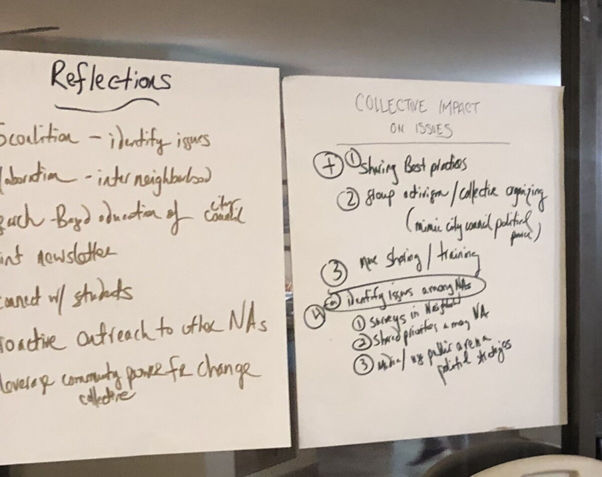 Representatives from each Neighborhood Association will continue to work on these efforts in working groups and we invite neighbors to join in!
