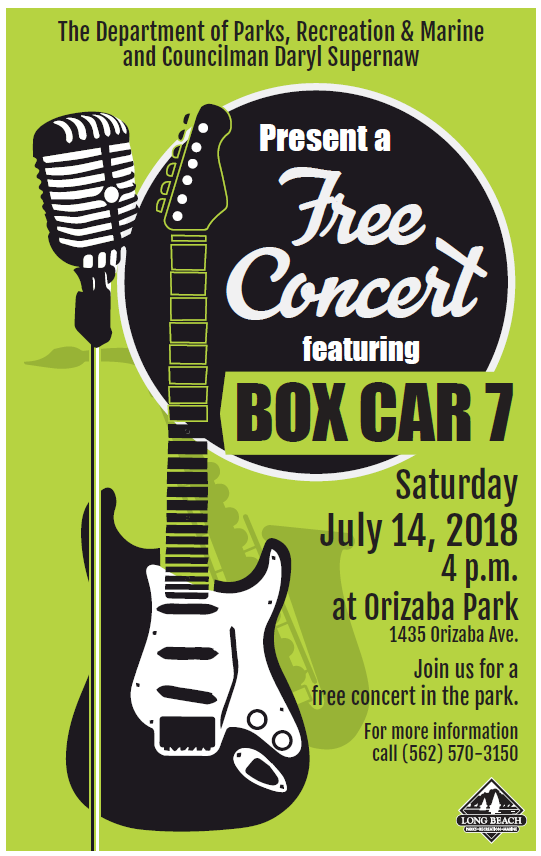 On Saturday July 14th 4pm we are invited to an Orizaba Park Concert this weekend with Boxcar 7! District 4 hosts.