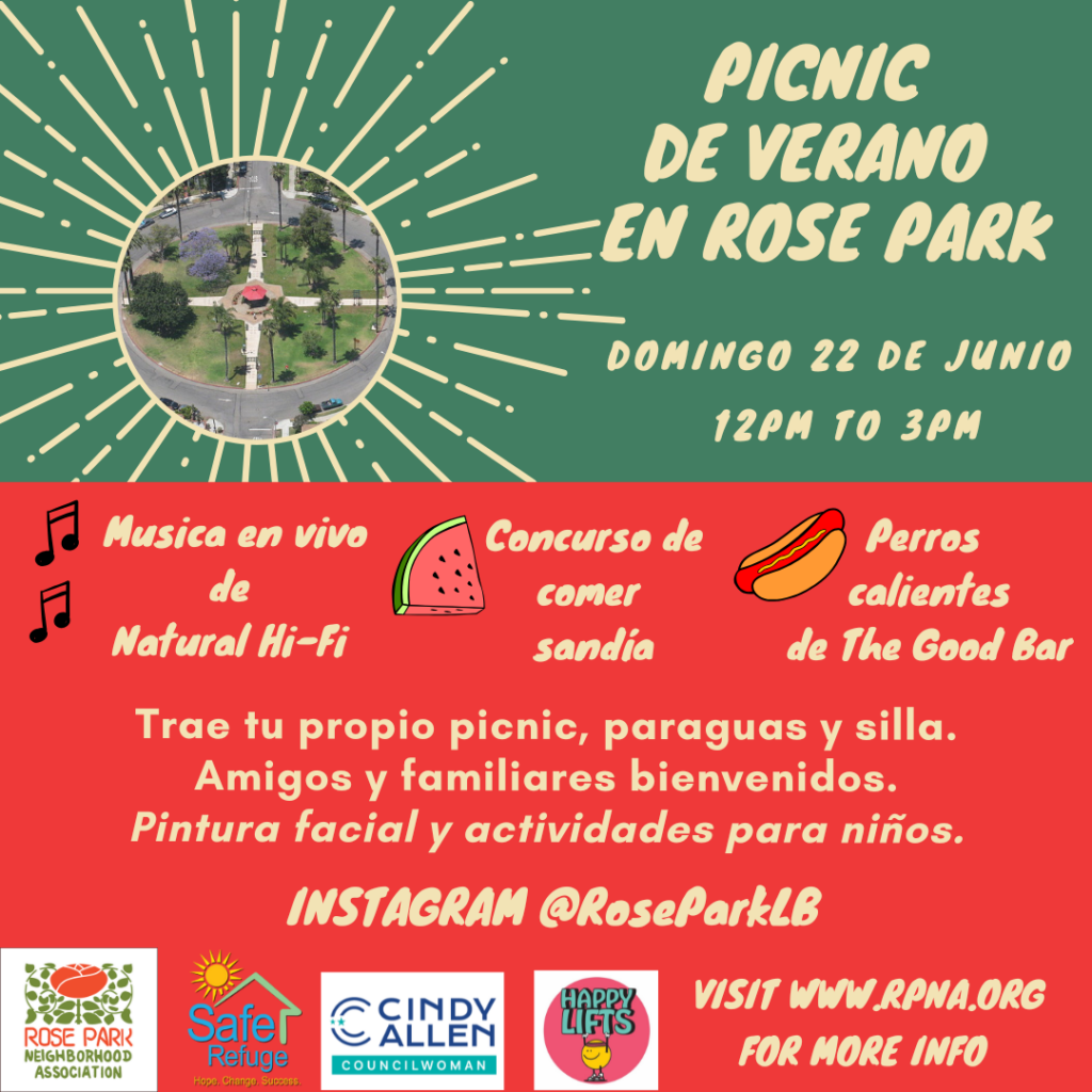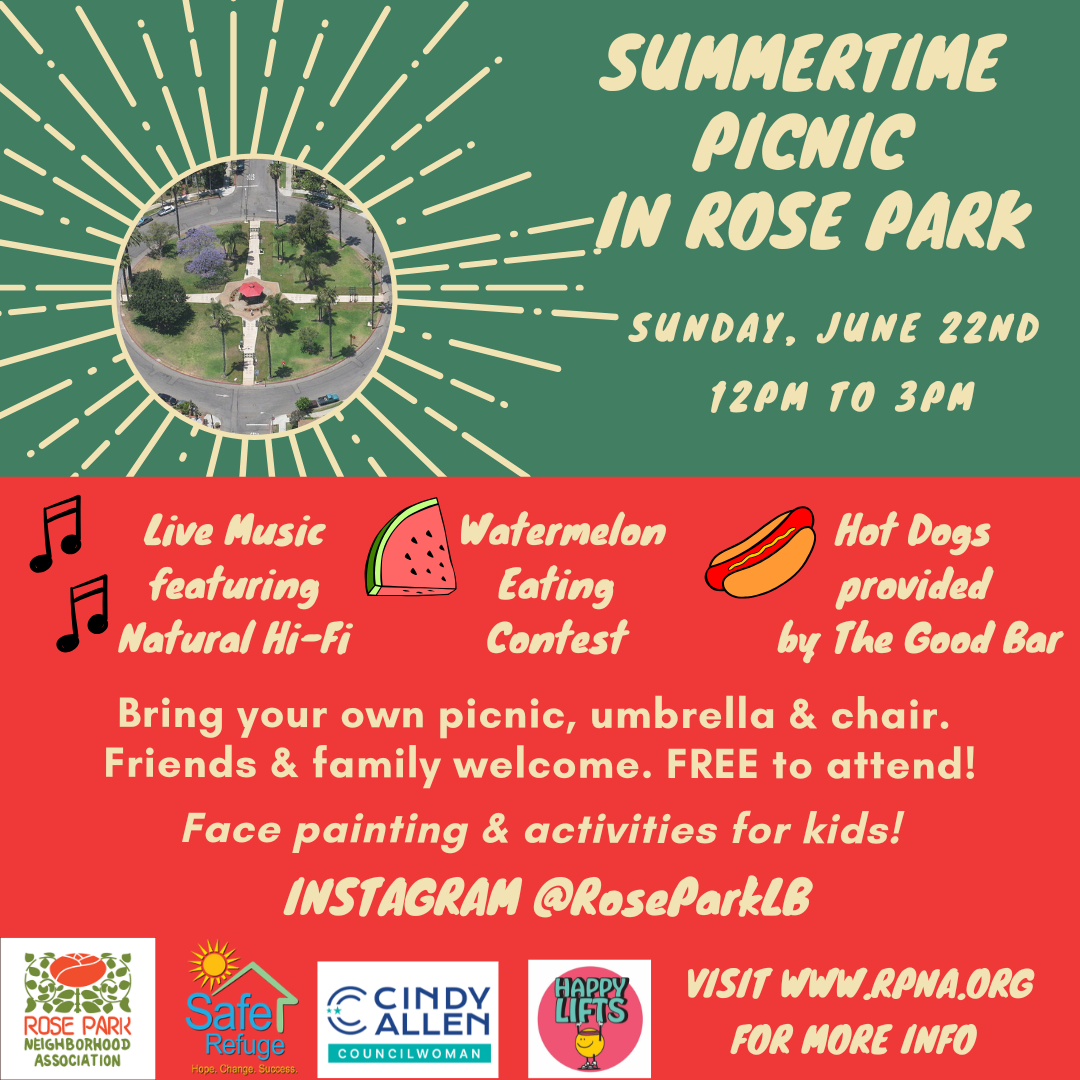 We are looking for volunteers to help us with set up on Sunday, June 22nd at 10AM! Please DM us on Instagram @RoseParkLB or email us at info@rpna.org if you are able to help out.