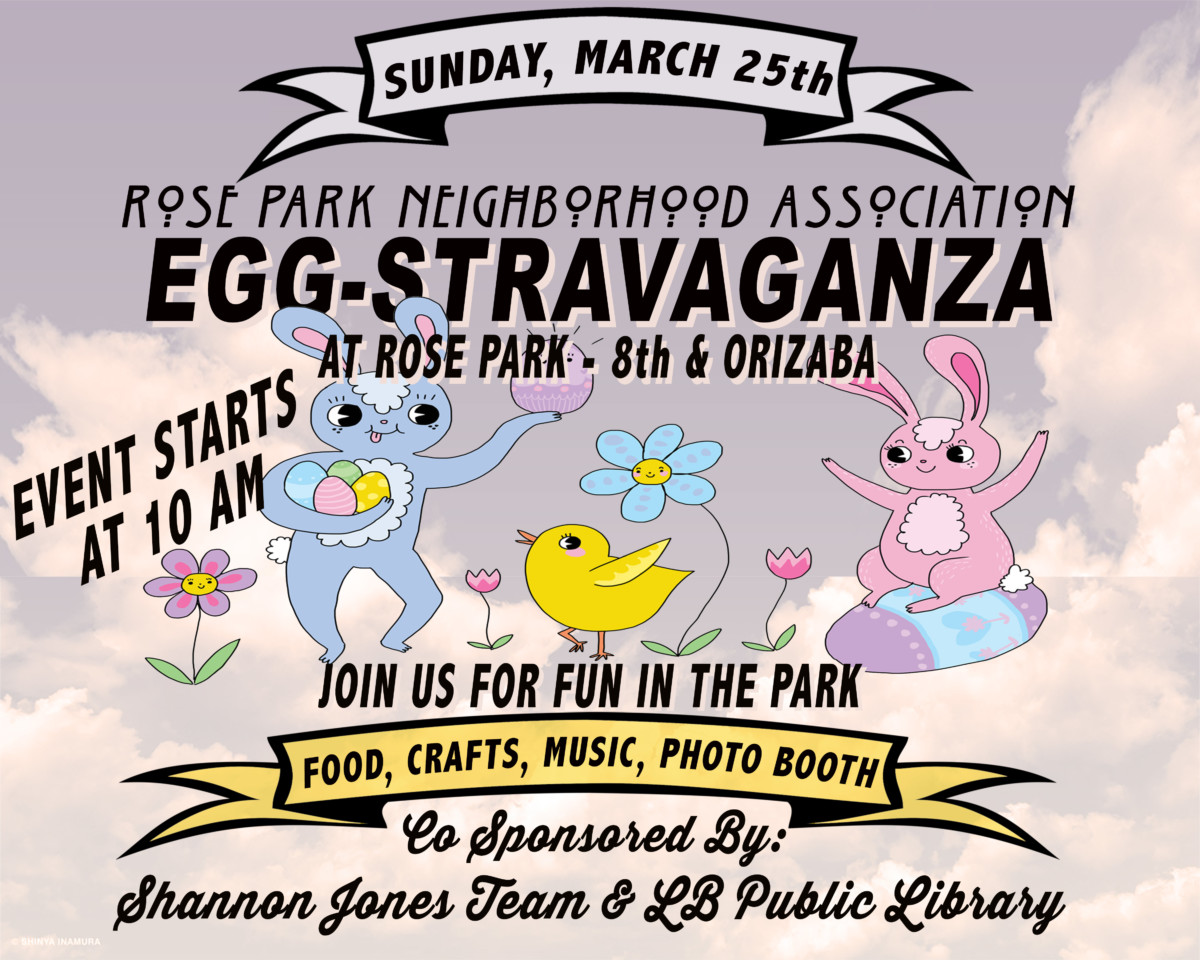 On Sunday, March 25th, Rose Park Residents gathered for the annual Eggstravaganza to enjoy music, activities, games and eggs. However, no event is complete without coffee and food! Rose Park Neighborhood Association sends a HUGE THANK YOU to Corner Bakery Cafe on PCH and 7th Street for their generous donation of coffee and pastries, and making Rose Park a place for friends and neighbors to connect.