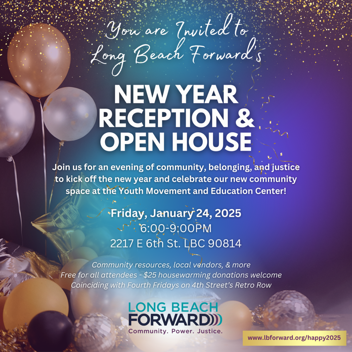 You are invited to meet our new Rose Park neighbors at Long Beach Forward’s New Year Reception and Open House on Friday, January 24th from 6-9pm at the Youth Movement and Education Center! The center is new to Rose Park Neighborhood and is located on 6th and Dawson at 2217 E. 6th St. Long Beach, CA 90814.